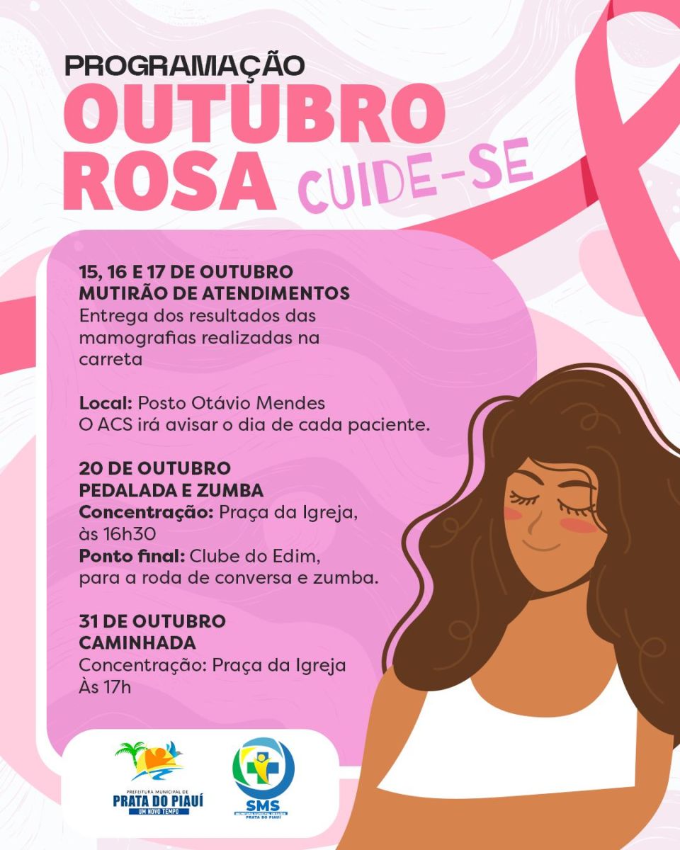A Prefeitura de Prata do Piauí, por meio da Secretaria Municipal de Saúde, promove ao longo do mês de outubro uma série de atividades voltadas à conscientização sobre a prevenção e o diagnóstico precoce do câncer de mama.